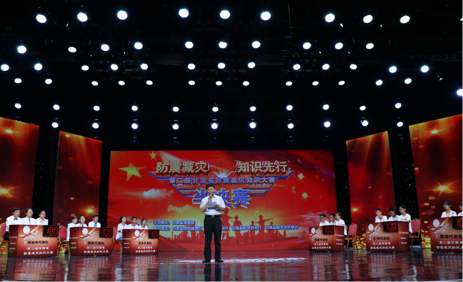 为全面贯彻习近平总书记关于防灾减灾救灾和自然灾害防治重要论述精神,贯彻全国地震科普大会精神,做好我省参加全国防震减灾知识大赛的准备工作。 6月22日,甘肃省地震局联合省应急厅、省教育厅、省科技厅、省科协主办的第二届甘肃省防震减灾知识大赛半决赛在甘肃省广播电视总台圆满落下帷幕。省地震局副局长石玉成,省应急厅、省教育厅、省科技厅、省科协等相关单位领导、干部、专家和各市州代表队及兰州市实验小学等代表共500余人参加并观摩本次活动。