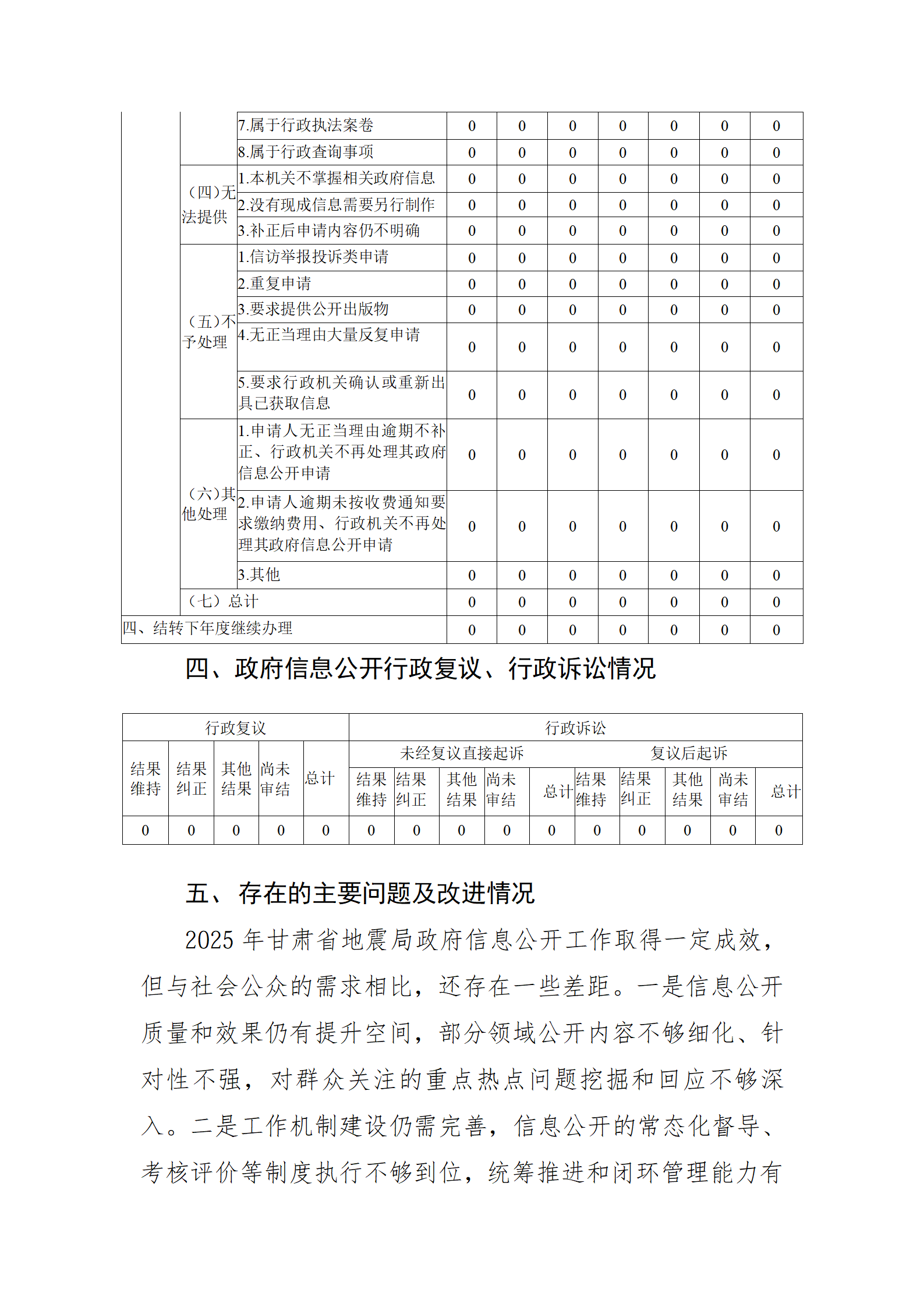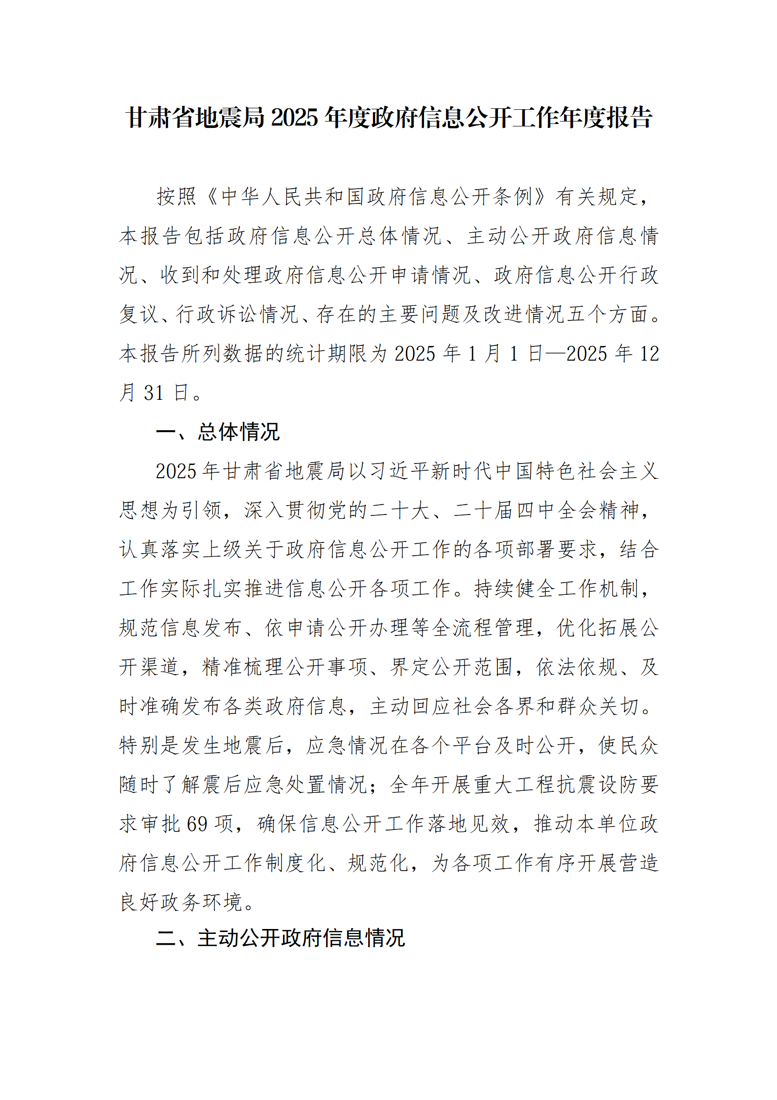 甘肃省地震局2025年度政府信息公开工作年度报告