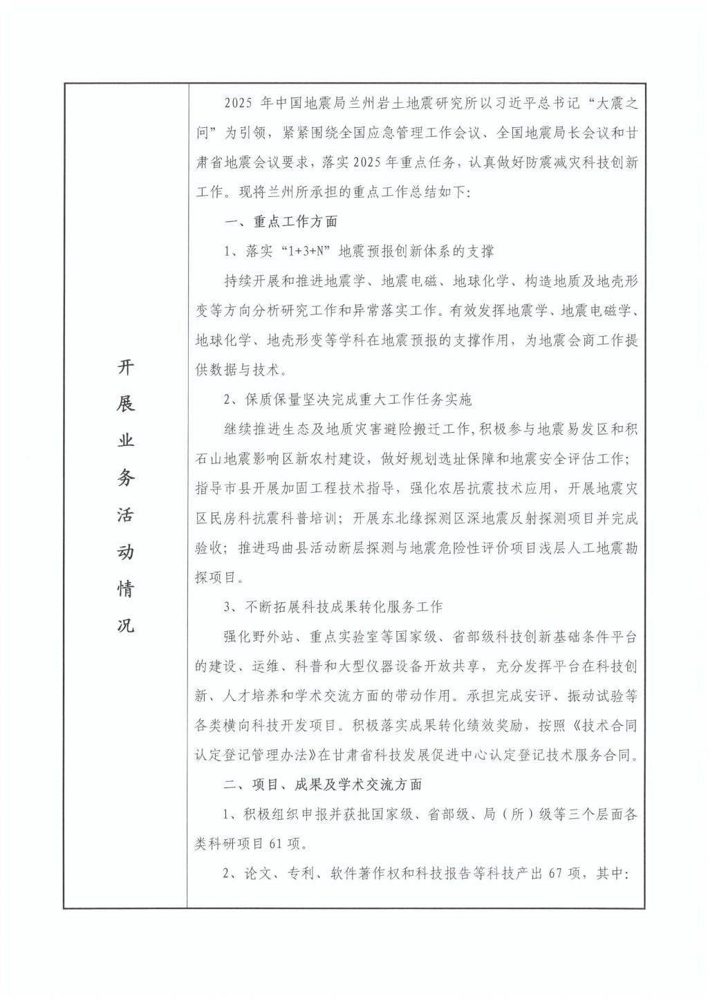 根据省编办《关于开展事业单位法人年度报告公示工作的通知》要求,现将局属事业单位中国地震局兰州岩土地震研究所法人年度报告书予以公示,接受社会监督。公示期2025年3月11日至5月11日,共计60天。